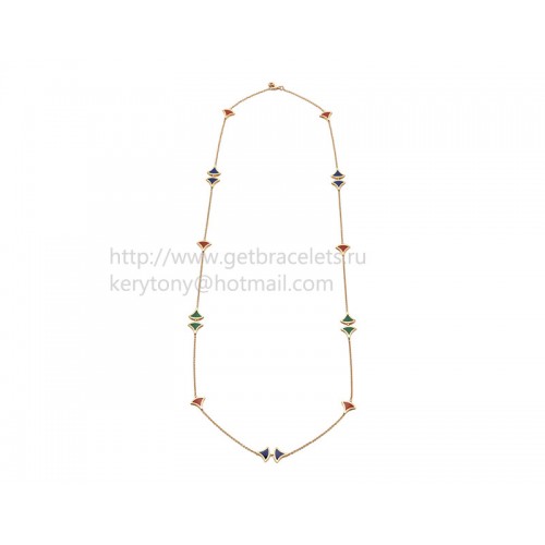 Bvlgari Divas Dream Sautoir Necklace in Rose Gold with Carnelian Malachite and Lapis Lazuli