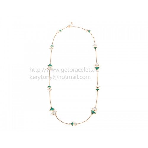 Bvlgari Divas Sautoir Necklace in Rose Gold with Malachite and Mother of Pearl