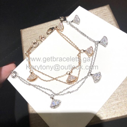 Bvlgari Divas Dream Double Chain Bracelet 4 Motifs with Full Diamonds Rose Gold And White Gold