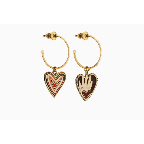 Dior Dioramour Multicolor Heart-shaped Pendant Ladies Asymmetric Vintange Brass Hoop Earrings