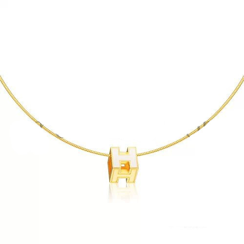 Hermes Cage dH Necklace White in Lacquer Yellow Gold