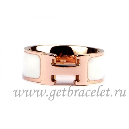 Hermes Enamel Clic H Ring in 18kt Pink Gold with White