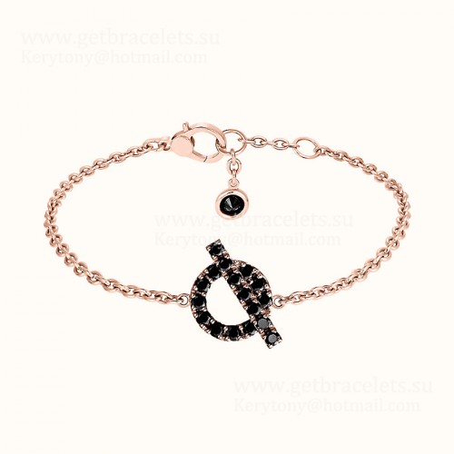 • Hermes Finesse Bracelet in Rose Gold and Black Spinel Gemstones US Sale Women Jewelry