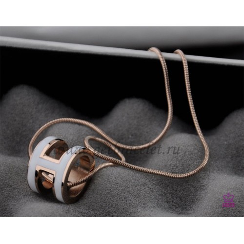 Hermes 3D Pop “H” logo Snake Bone White Necklace in Pink Gold
