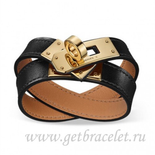Hermes Rivale Double Wrap Bracelet Black With Gold