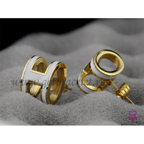 Hermes Pop H White Earrings in Yellow Gold