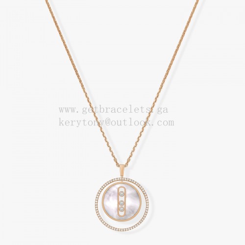 • Messika White Mother-of-Pearl Lucky Move MM Necklace Rose Gold and White Gold