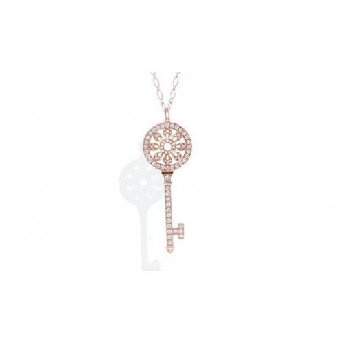 Tiffany Keys Paved-diamonds Round Key Pendant Female Mordern Keys Necklace Rose God/ Silver