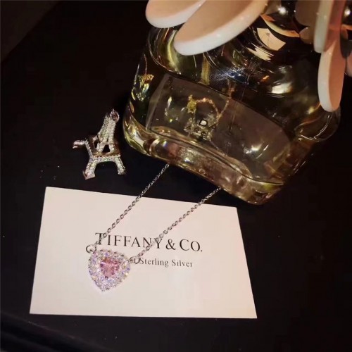 Tiffany Heart Pendant Paved White Pink Crystals Necklace Ring
