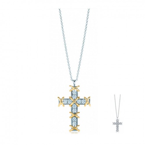 Tiffany Schlumberger Ten Stone Cross Pendant Necklace Diamonds America Lady