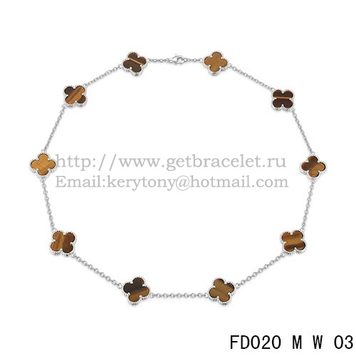 Van Cleef Arpels Alhambra Necklace White Gold 10 Motifs Tigers Eye Mother of Pearl 45cm
