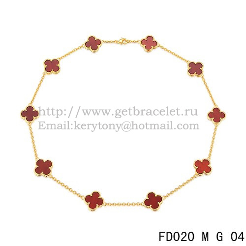 Van Cleef Arpels Alhambra Necklace Yellow Gold 10 Motifs Carnelian Mother of Pearl 45cm