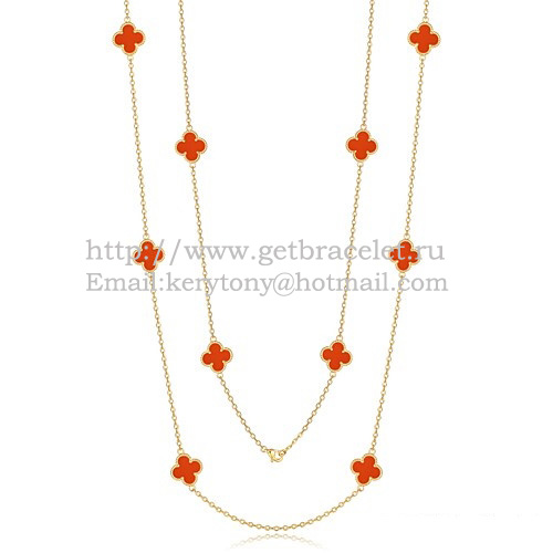 Van Cleef Arpels Alhambra Necklace Yellow Gold 10 Motifs With Carnelian Mother Of Pearl