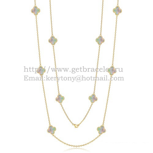 Van Cleef Arpels Alhambra Necklace Yellow Gold 10 Motifs With Gray Mother Of Pearl