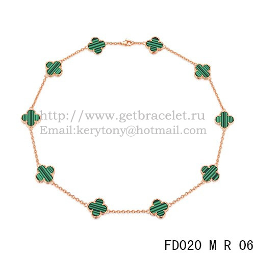Van Cleef Arpels Alhambra Necklace Pink Gold 10 Motifs Malachite Mother Of Pearl 45cm