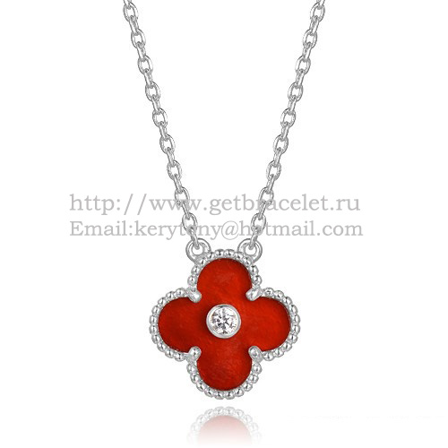 Van Cleef Arpels Alhambra Pendant White Gold With Carnelian Mother Of Pearl Round Diamonds