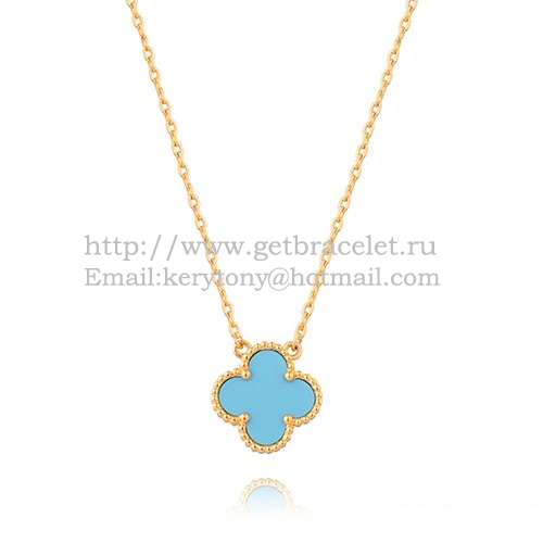 • Van Cleef Arpels Alhambra Pendant Yellow Gold With Turquoise Mother Of Pearl 15mm