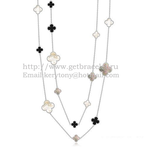 Van Cleef Arpels Magic Alhambra Necklace White Gold 16 Motifs With Black Agate White Gray Mother Of Pearl