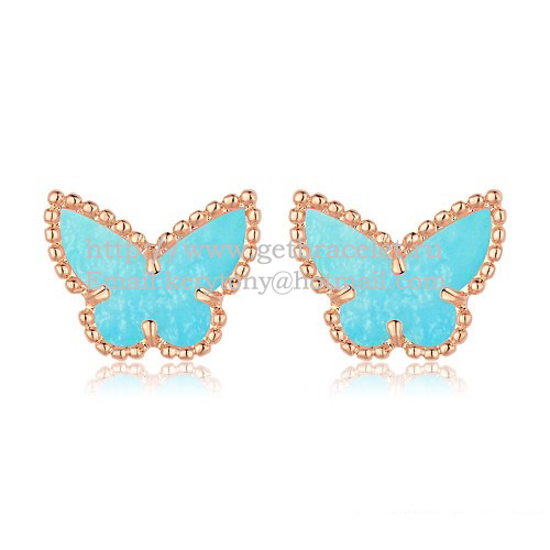 Van Cleef Arpels Sweet Alhambra Butterfly Earrings Pink Gold With Turquoise Mother Of Pearl