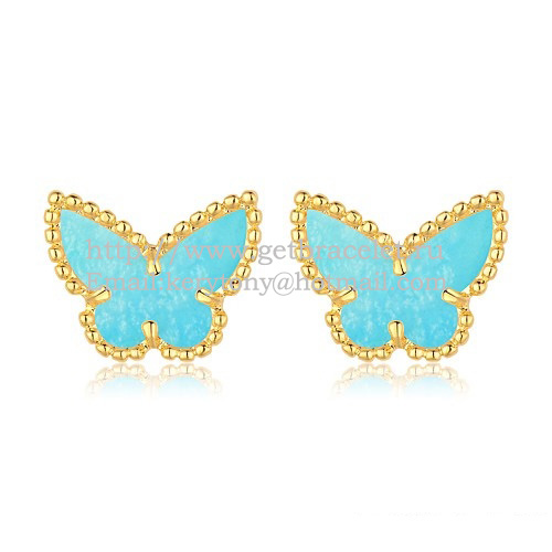 Van Cleef Arpels Sweet Alhambra Butterfly Earrings Yellow Gold With Turquoise Mother Of Pearl
