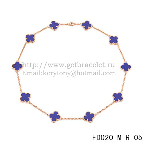 Van Cleef Arpels Alhambra Necklace Pink Gold 10 Motifs Lapis Stone Mother of Pearl 45cm