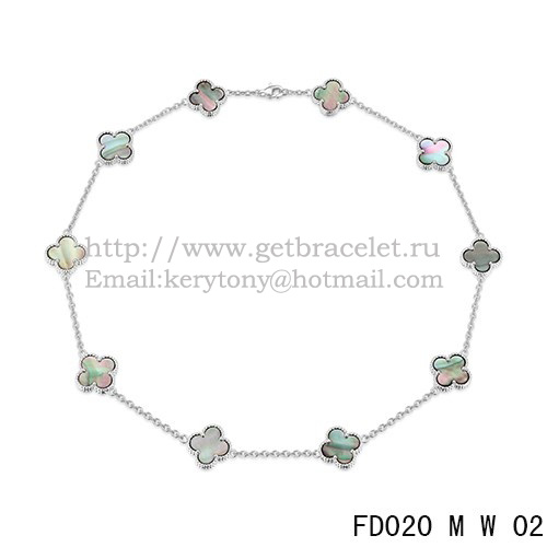 Van Cleef Arpels Alhambra Necklace White Gold 10 Motifs Gray Mother of Pearl 45cm