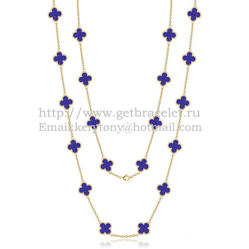Van Cleef Arpels Alhambra Necklace Yellow Gold 20 Motifs With Lapis Stone Mother Of Pearl