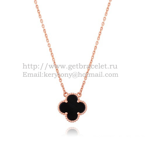 • Van Cleef Arpels Alhambra Pendant Pink Gold With Black Agate Mother Of Pearl 15mm