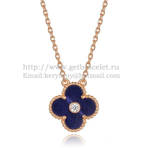 Van Cleef Arpels Alhambra Pendant Pink Gold With Lapis Stone Mother Of Pearl Round Diamonds