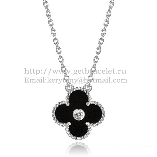 Van Cleef Arpels Alhambra Pendant White Gold With Black Agate Mother Of Pearl Round Diamonds