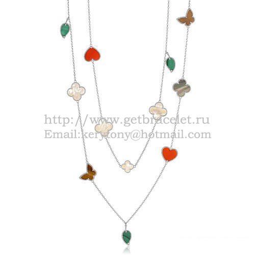 Van Cleef Arpels Lucky Alhambra Long Necklace White Gold 12 Motifs Stone Combination
