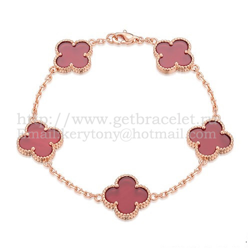 Van Cleef Arpels Alhambra Bracelet 5 Motifs Pink Gold With Carnelian Mother Of Pearl