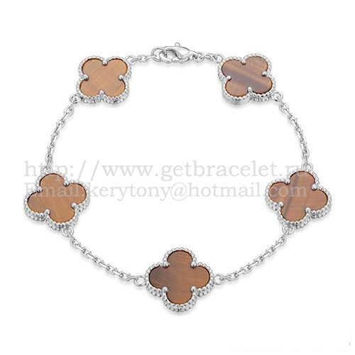 Van Cleef Arpels Alhambra Bracelet 5 Motifs White Gold With Tigers Eye Mother Of Pearl