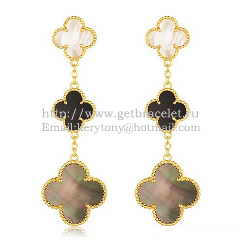 Van Cleef Arpels Magic Alhambra 3 Motifs Earrings Yellow Gold With Stone Combination