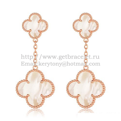 Van Cleef Arpels Magic Alhambra Earrings Pink Gold With White Mother Of Pearl