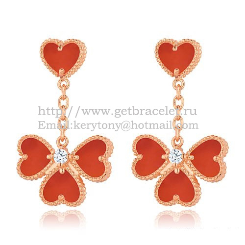 Van Cleef Arpels Sweet Alhambra Effeuillage Earrings Pink Gold With Carnelian Mother Of Pearl