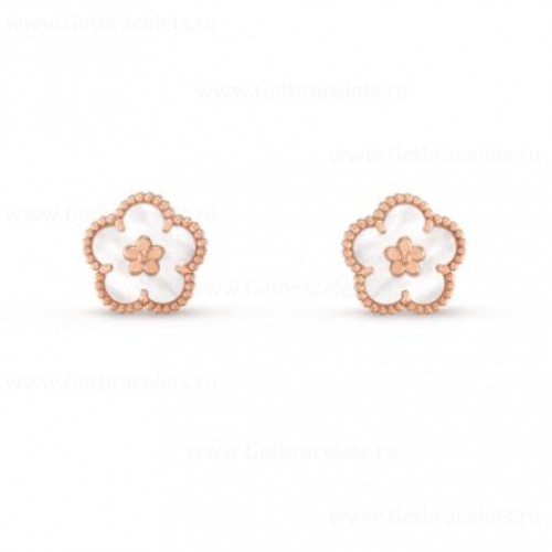 Van Cleef Arpels Lucky Long Earrings Plum Blossom Rose Gold Mother-of-pearl