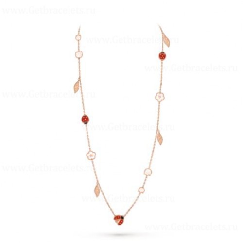 Van Cleef Arpels Lucky Long Necklace Rose Gold Carnelian and Mother-of-pearl Onyx 15 Motifs