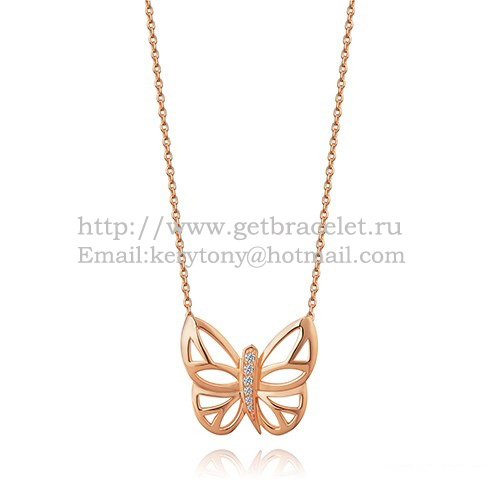 Van Cleef Arpels Butterfly Hollowing Carving Pendant Pink Gold With Diamond