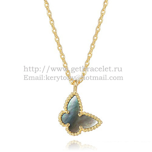 Van Cleef Arpels Lucky Alhambra Butterfly Necklace Yellow Gold With Gray Mother Of Pearl