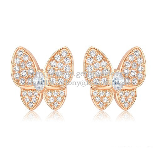 Van Cleef Arpels Flying Two Butterflies Earrings Pink Gold With Pave Diamond