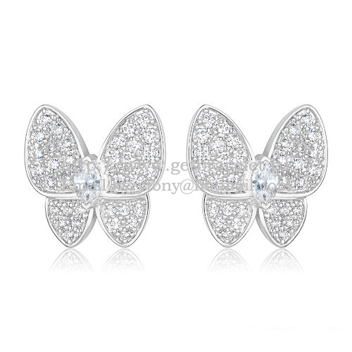 Van Cleef Arpels Flying Two Butterflies Earrings White Gold With Pave Diamond