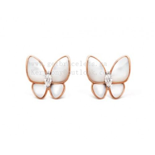 Van Cleef Arpels Two Butterfly Earrings Mother-of-pearl With Diamond Rose Gold