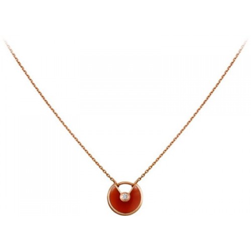 Amulette de Cartier Carnelian Diamond Necklack in Yellow Gold White Gold and Pink Gold
