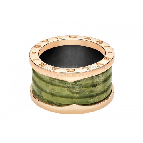 Bvlgari B.zero1 4-Band Rose Gold Ring with Green Marble