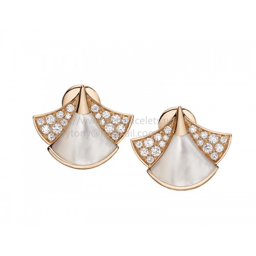 Bvlgari DIVAS Dream Earrings Rose Gold Set with Mother of Pearl and Pave Diamonds