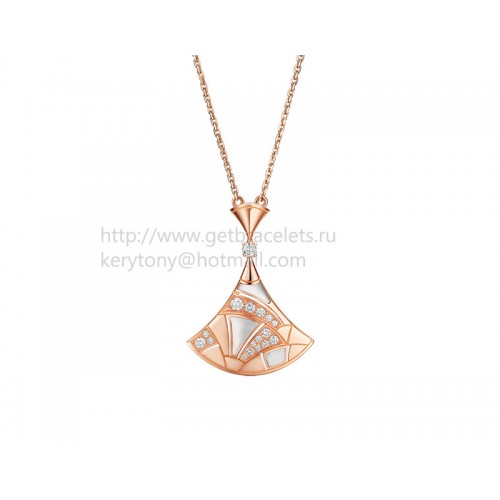 Bvlgari Divas Dream Sculpting Fan-Shaped Necklace Rose Gold with Mother of Pearl and Pave Diamonds