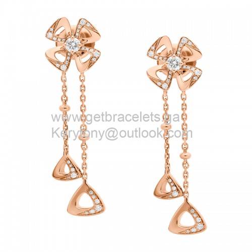 Bvlgari Fiorever Chain Earrings with Two Diamonds and Pave Diamonds Rose Gold and White Gold AAA