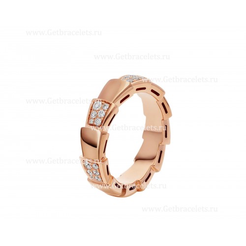 BVLGARI Medium Serpenti Viper Band Ring in 18k Rose Gold with Demi-pave Diamonds