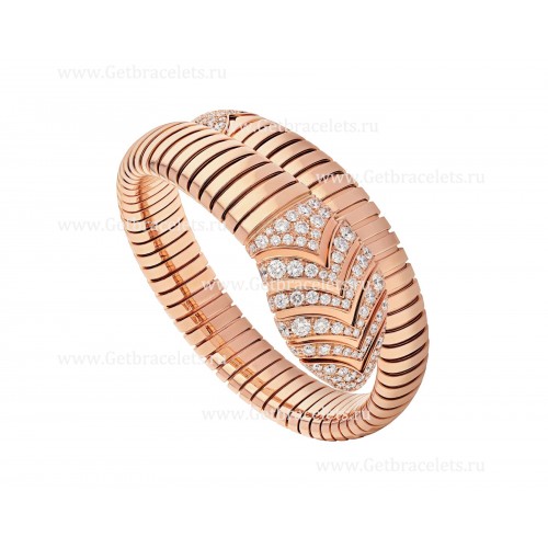 Bvlgari Serpenti Tubogas Single Spiral Bracelet in 18K Rose Gold set with Pave Diamonds on the Head and the Tail